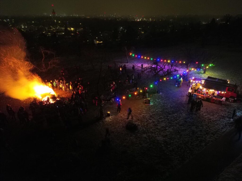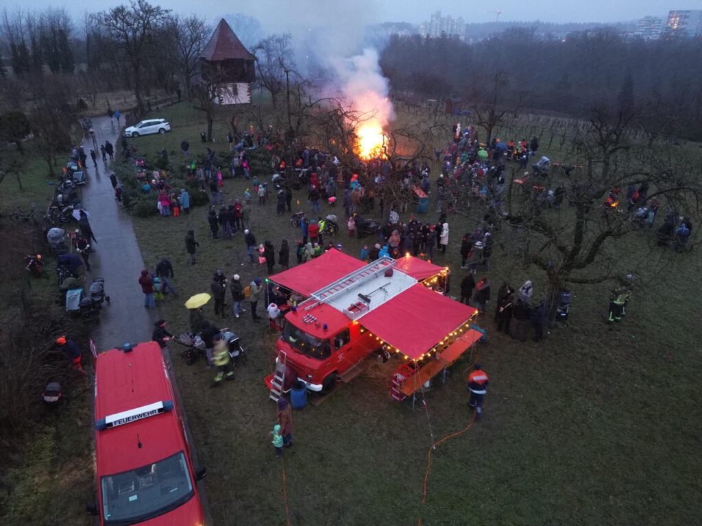 Der zunächst angekündigte Regen entpuppte sich dann doch als leichtes Schneegestöber und auch der Wind hatte rechtzeitig nachgelassen. Der richtige Rahmen war somit geschaffen und so strömten auch in diesem Jahr zahlreiche große und kleine Besucherinnen und Besucher auf die Wiese am Türmle aufs Lehener Bergle.
